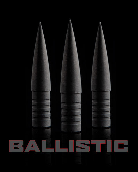 Ballistic is the ultimate point design for 3D Archery and the crowded 12-ring. Even longer than standard 3D Nock Busters and with a shallower angle to reduce glance-offs, Ballistics help prevent potential reductions in your score that could cost you a tournament. 3D NockBuster Ballistic are made from pre-hardened steel with a black oxide process for an exceptional look that is incredibly functional in design and performance.